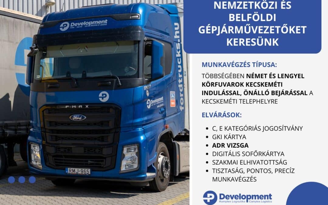 Logisztikai csapatunk bővítésére keresünk nemzetközi és belföldi gépjárművezetőket